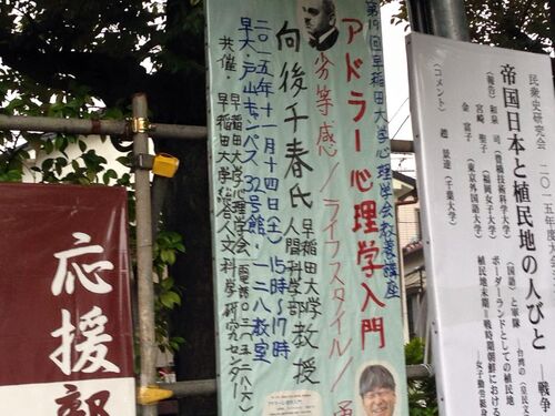 早稲田大学心理学会主催の教養講座として「アドラー心理学入門」を開きました。以前から講座を頼まれていたのですが、やっと果たすことができました。参加者は50人くらいでした。参加していただいた皆さん、ありがとうございました。 実は、私が学部、大学院…