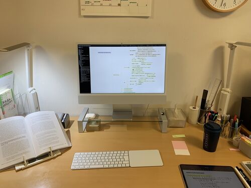 2021年9月7日(火) 今まで仕事用に使ってきたiMac 27インチを、2021年版iMac 24インチに置き換えました。 机の上は写真のようになりました。ダウンサイズしましたので、圧迫感がとても少なくなりました。画面も小さくなったわけですけれども、実質的には5K…